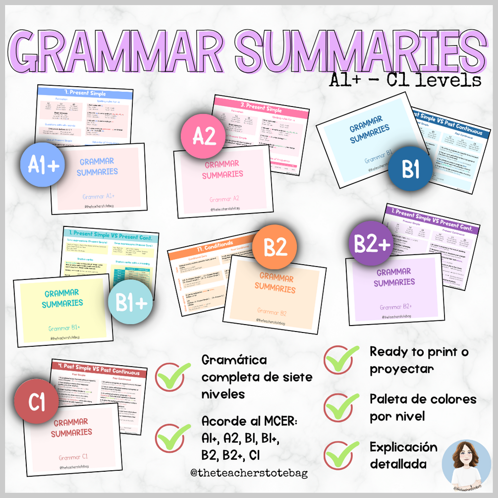 Si lo que prefieres es poder explicar la gramática paso a paso, te recomiendo mi otro producto, las GRAMMAR SLIDES.