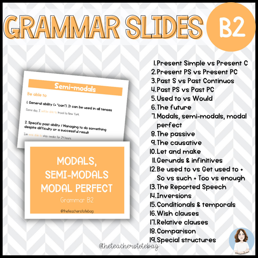 LOS GRAMMAR SLIDES B2+ incluyen: